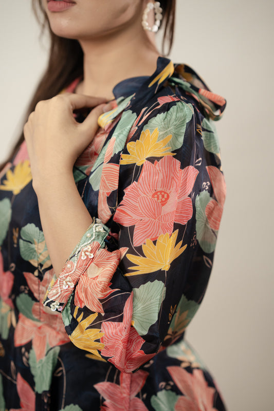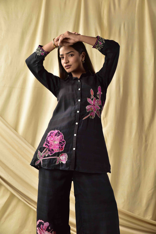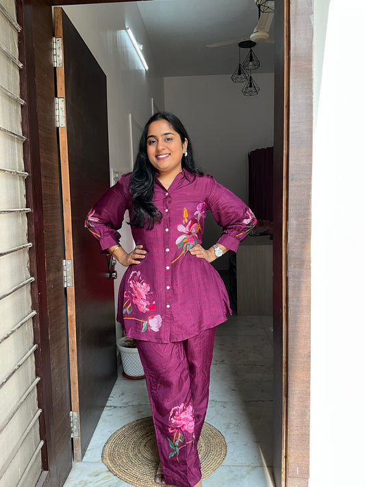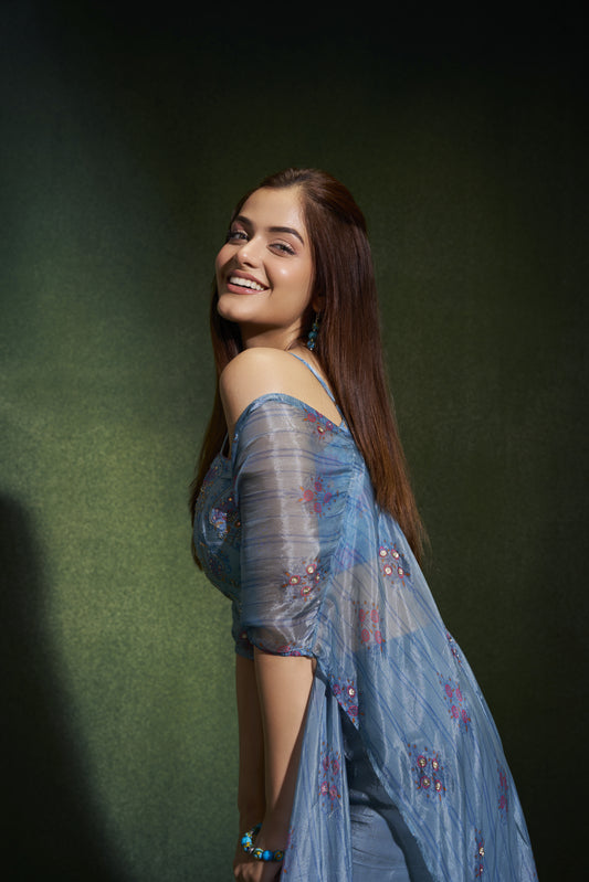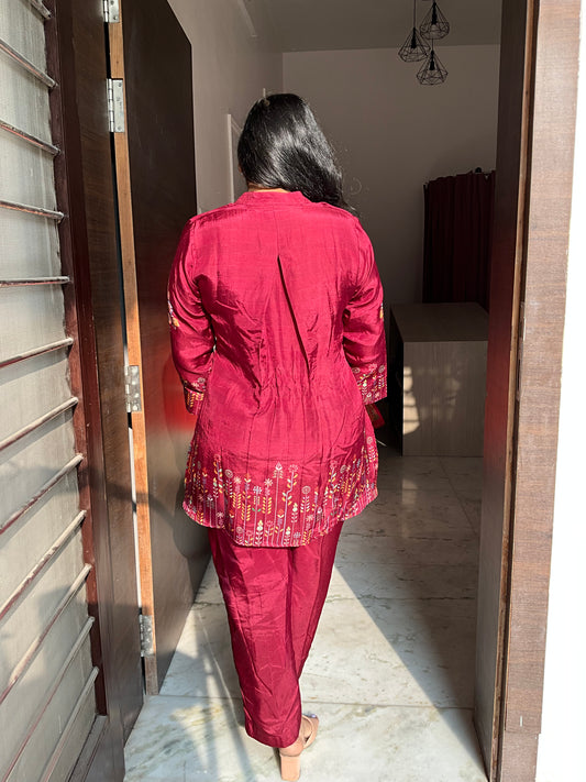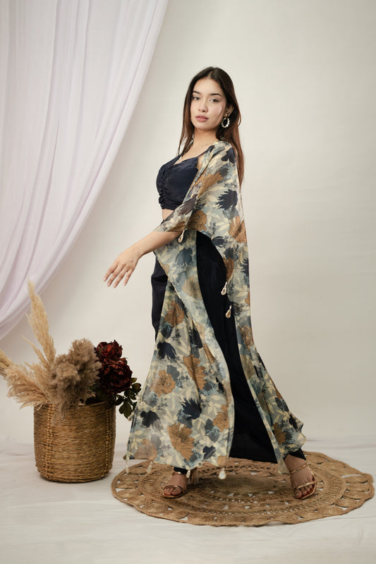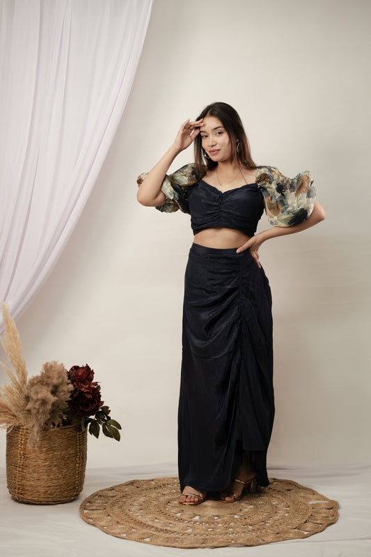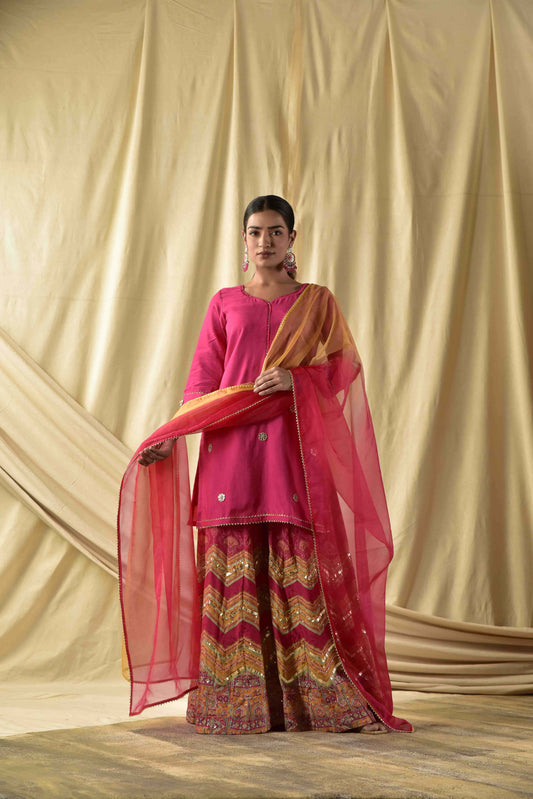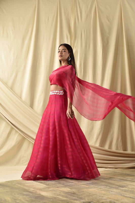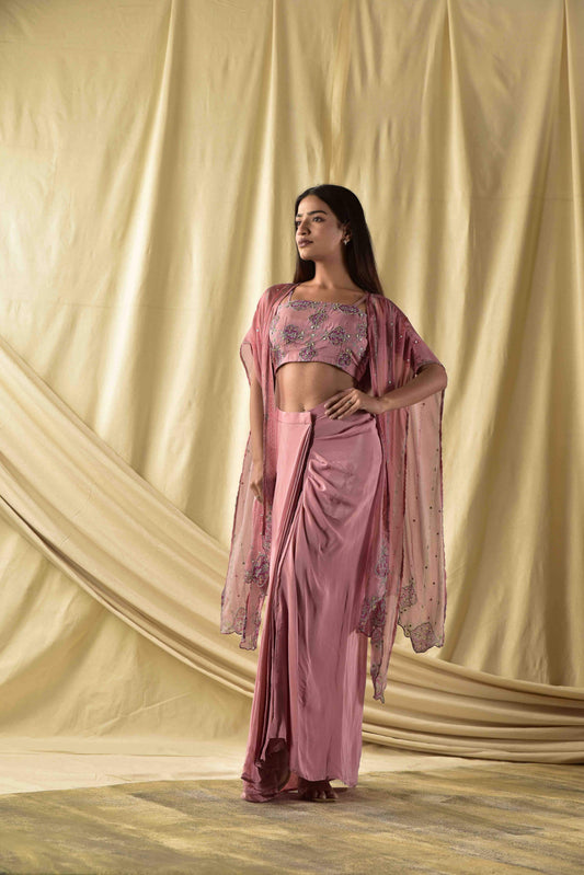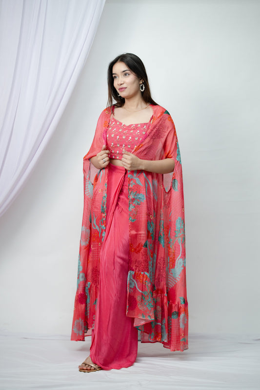 Bright Flamingo PInk Shrug and Draped Skirt Set