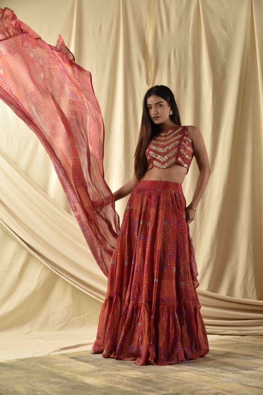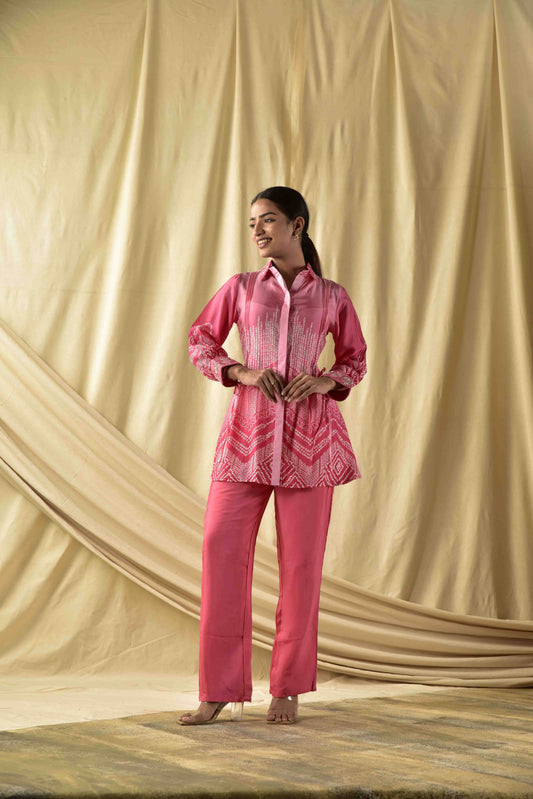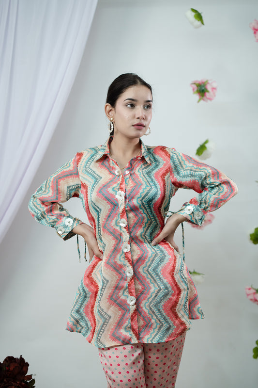 Cotton Candy Lehariya Bandhej Co-ord Set