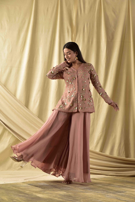Beige Baghicha Peplum Kurta and Plazzao Set