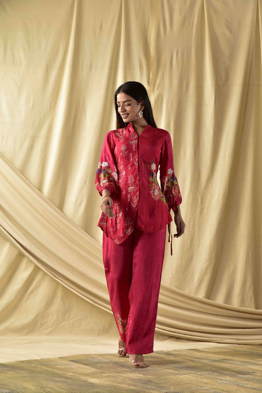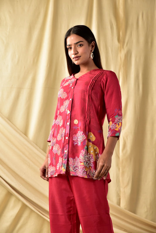 Cherry Red Floral Jaal Co-ord Set