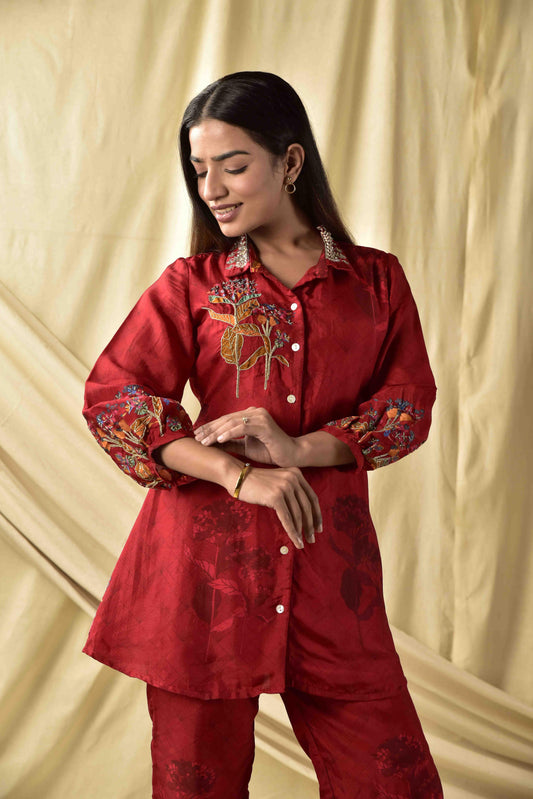 Crimsom Red Bhagicha Co-ord Set